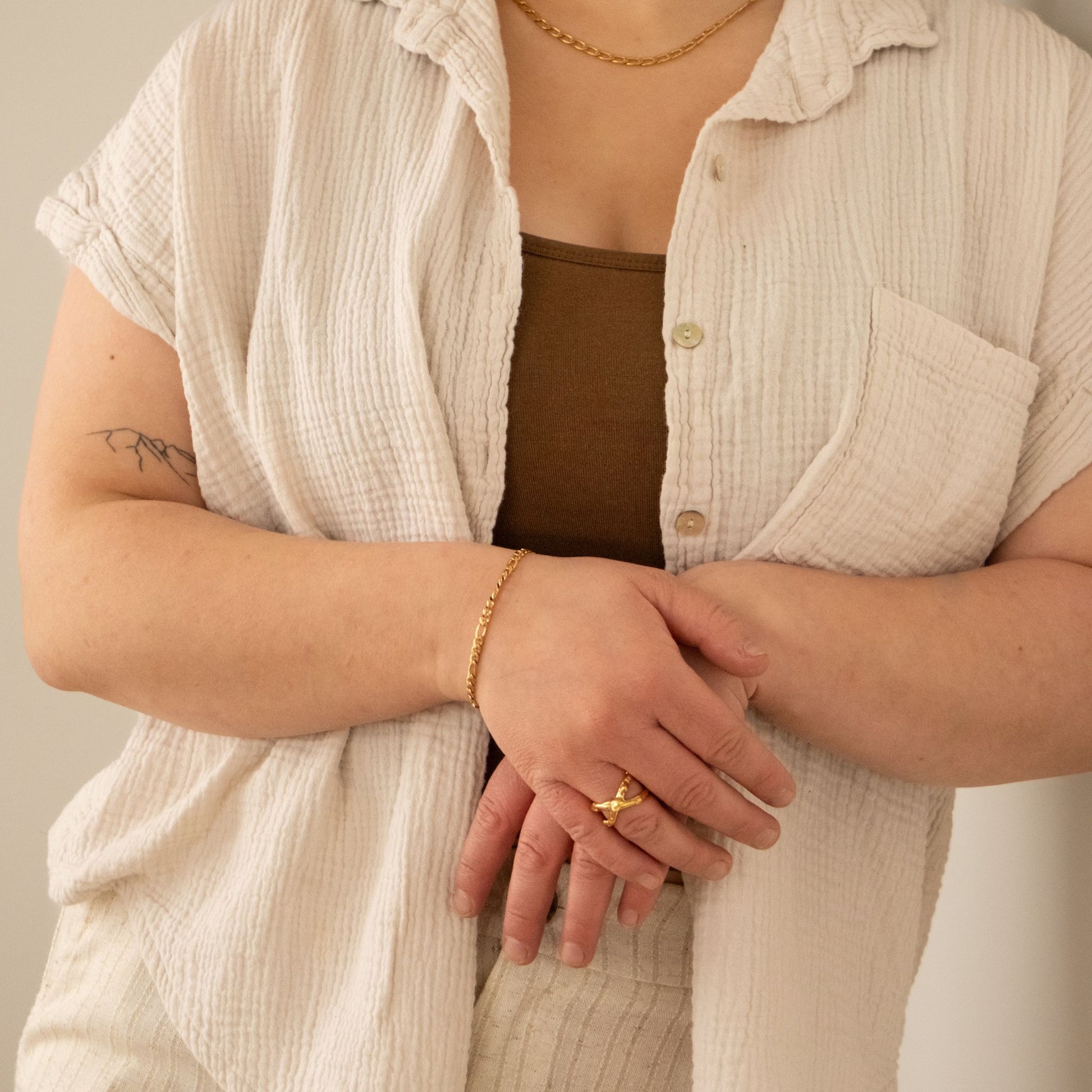 Crafted from high-quality stainless steel with gold plating, the Lana Figaro Bracelet is designed to be durable, tarnish-resistant, and perfect for everyday wear. Its versatile design makes it easy to wear alone for a minimalist look or stacked with other bracelets for a layered style.